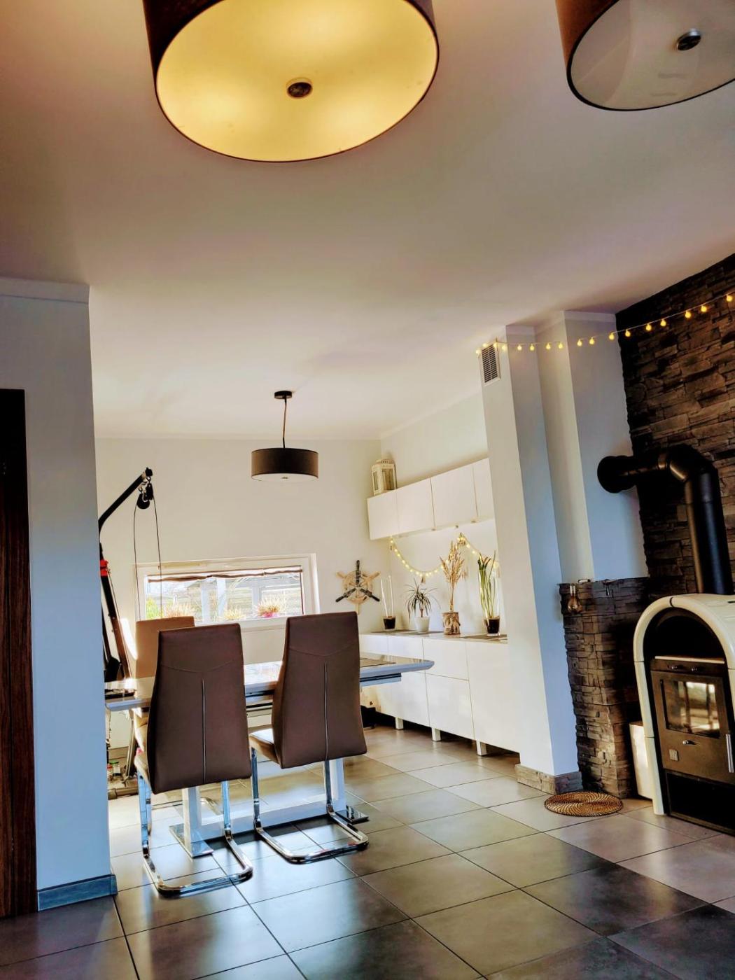 Dom z 2 sypialniami. Guests will have a special experience as this holiday home provides a sauna and a fireplace. The holiday home features a dining area, a wardrobe, as well as a shared bathroom boasting a bath and a shower. Guests will find a stovetop, a refrigerator, a dishwasher and kitchenware in the well-equipped kitchen. The holiday home also has a barbecue. Featuring a terrace, this holiday home also offers a washing machine, a seating area and a flat-screen TV with streaming services. The unit offers 3 beds. Dom wakacyjny - 6 osobowy. Powierzchnia pokoju ok.: 80 mkw.